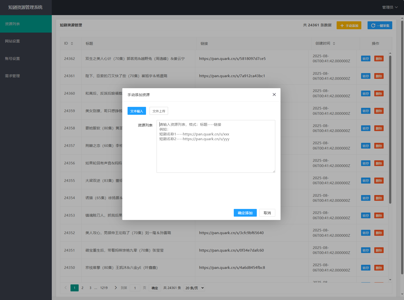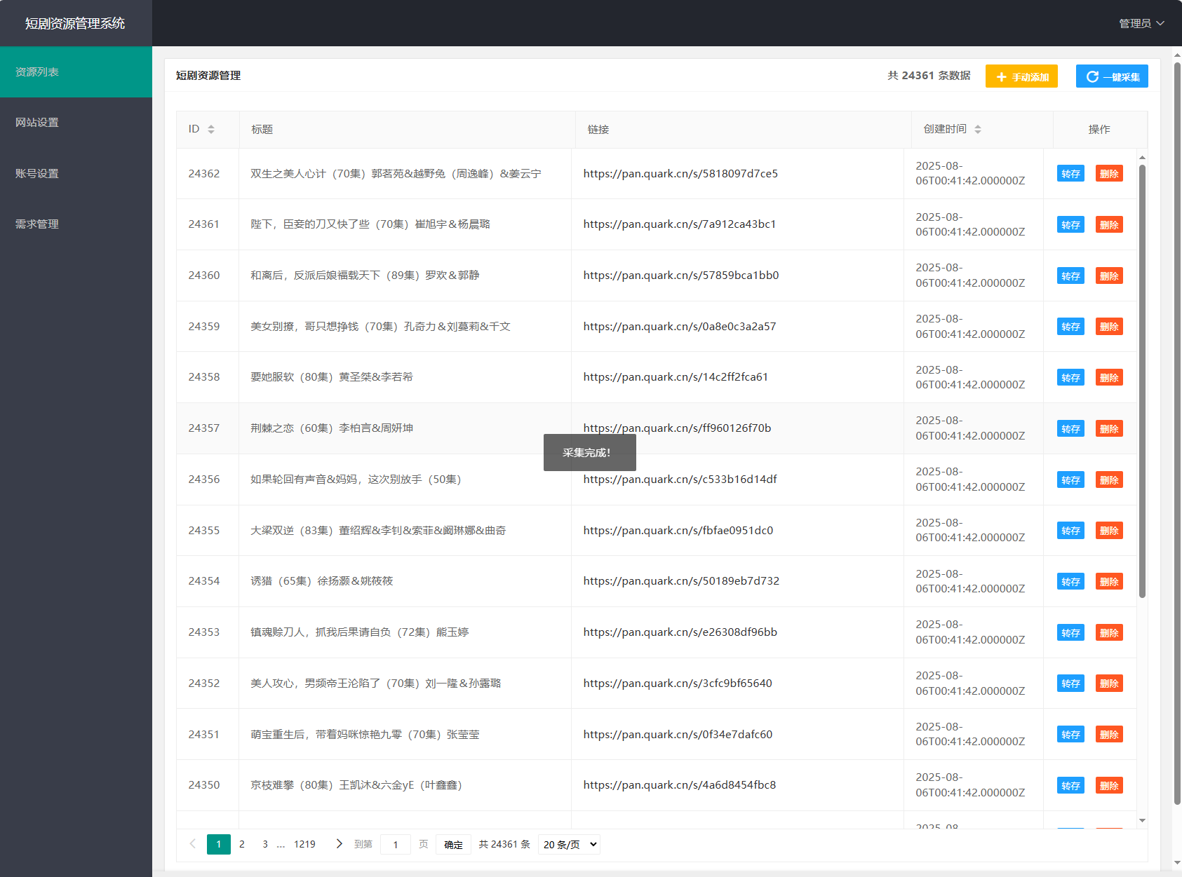 网盘短剧资源转存项目源码 支持夸克 带后台 附教程站长1个月前更新关注私信02294533 简介: 网盘短剧资源转存项目源码 支持夸克 带后台 附教程 安装教程: 测试环境:Nginx + PHP7.4 + MySQL5.7 数据库信息配置文件:.env 网站运行目录设置为:public 图片: 网盘短剧资源转存项目源码 支持夸克 带后台 附教程此内容为付费资源,请付费后查看¥2.99黄金会员¥0.99钻石会员免费立即购买您当前未登录!建议登陆后购买,可保存购买订单付费资源已售 60© 版权声明 版权声明 1 本网站名称:皮皮网创网 2 本站永久网址: https://www.pipihai.com/ 3 本网站的文章部分内容可能来源于网络,仅供大家学习与参考,如有侵权,请联系皮皮进行删除处理。 4 本站一切资源不代表本站立场,并不代表本站赞同其观点和对其真实性负责。 5 本站一律禁止以任何方式发布或转载任何违法的相关信息,访客发现请向皮皮举报 6 本站资源大多存储在云盘,如发现链接失效,请联系我们我们会第一时间更新。 7 本站采用知识共享署名-非商业性使用-相同方式共享4.0国际许可协议进行许可 THE END精品源码网站源码 喜欢就支持一下吧点赞533 分享QQ空间微博QQ好友海报分享复制链接收藏