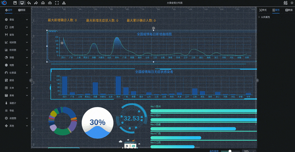 一个可拖拽式、可视化、低代码数据可视化开发平台,你可以用它自由的拼接成各种炫酷的大屏,同时支持用户方便的开发自己的组件并接入平台。