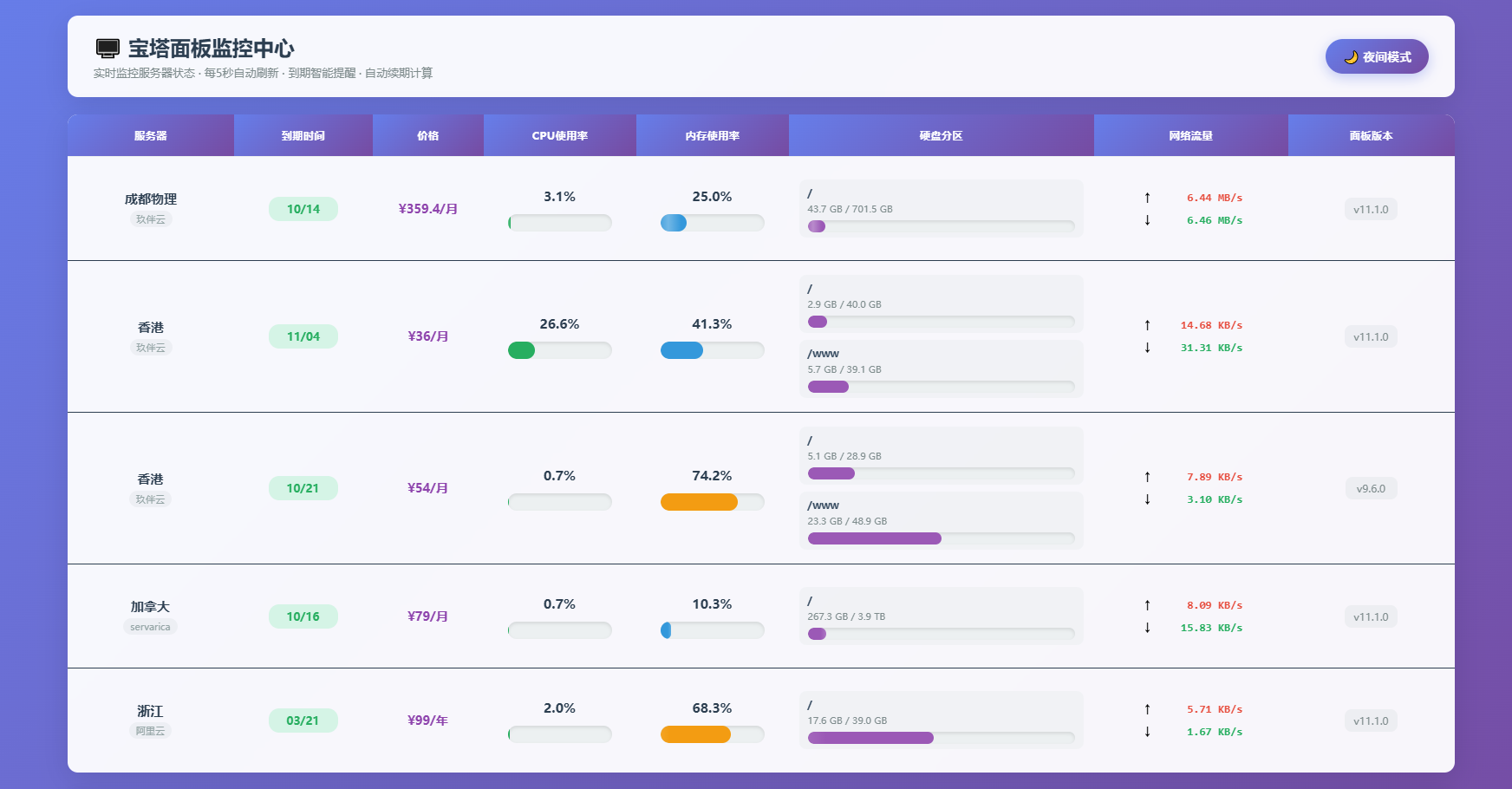 AI编写的一个服务器监控源码站长1小时前更新关注私信02186445 简介: AI编写的一个服务器监控源码 接口使用的宝塔面板api,被监控机器需要安装宝塔面板 将压缩包上传至站点解压,修改“servers.php”内链接信息即可 图片: AI编写的一个服务器监控源码此内容为付费资源,请付费后查看¥2.99黄金会员¥0.99钻石会员免费立即购买您当前未登录!建议登陆后购买,可保存购买订单付费资源已售 71© 版权声明 版权声明 1 本网站名称:皮皮网创网 2 本站永久网址: https://www.pipihai.com/ 3 本网站的文章部分内容可能来源于网络,仅供大家学习与参考,如有侵权,请联系皮皮进行删除处理。 4 本站一切资源不代表本站立场,并不代表本站赞同其观点和对其真实性负责。 5 本站一律禁止以任何方式发布或转载任何违法的相关信息,访客发现请向皮皮举报 6 本站资源大多存储在云盘,如发现链接失效,请联系我们我们会第一时间更新。 7 本站采用知识共享署名-非商业性使用-相同方式共享4.0国际许可协议进行许可 THE END精品源码网站源码 喜欢就支持一下吧点赞445 分享QQ空间微博QQ好友海报分享复制链接收藏