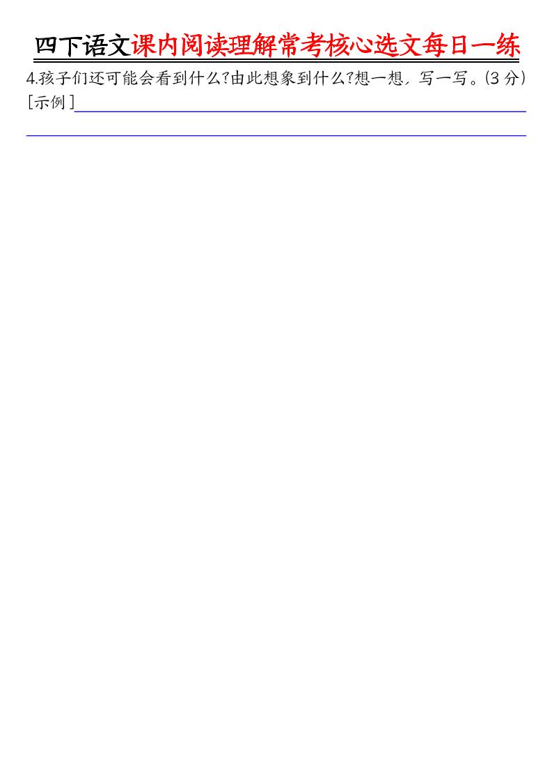 四年级下语文课内阅读理解-常考核心选文每日一练站长1小时前更新关注私信02414573 ——预览已结束,还剩24页未读——您已获得此文档下载权限,请点击底部下载完整文档 四年级下语文课内阅读理解-常考核心选文每日一练此内容为付费资源,请付费后查看¥4.9黄金会员¥2.9钻石会员免费立即购买您当前未登录!建议登陆后购买,可保存购买订单付费资源已售 41© 版权声明 版权声明 1 本网站名称:皮皮网创网 2 本站永久网址: https://www.pipihai.com/ 3 本网站的文章部分内容可能来源于网络,仅供大家学习与参考,如有侵权,请联系皮皮进行删除处理。 4 本站一切资源不代表本站立场,并不代表本站赞同其观点和对其真实性负责。 5 本站一律禁止以任何方式发布或转载任何违法的相关信息,访客发现请向皮皮举报 6 本站资源大多存储在云盘,如发现链接失效,请联系我们我们会第一时间更新。 7 本站采用知识共享署名-非商业性使用-相同方式共享4.0国际许可协议进行许可 THE END语文 喜欢就支持一下吧点赞573 分享QQ空间微博QQ好友海报分享复制链接收藏