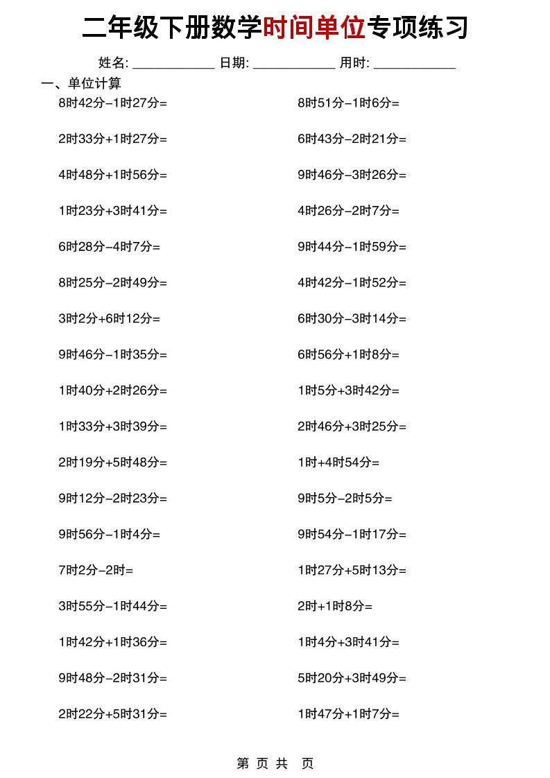 二年级下数学时间单位专项练习站长11天前更新关注私信02659531 ——预览已结束,还剩18页未读——您已获得此文档下载权限,请点击底部下载完整文档 二年级下数学时间单位专项练习此内容为付费资源,请付费后查看¥4.9黄金会员¥2.9钻石会员免费立即购买您当前未登录!建议登陆后购买,可保存购买订单付费资源已售 42© 版权声明 版权声明 1 本网站名称:皮皮网创网 2 本站永久网址: https://www.pipihai.com/ 3 本网站的文章部分内容可能来源于网络,仅供大家学习与参考,如有侵权,请联系皮皮进行删除处理。 4 本站一切资源不代表本站立场,并不代表本站赞同其观点和对其真实性负责。 5 本站一律禁止以任何方式发布或转载任何违法的相关信息,访客发现请向皮皮举报 6 本站资源大多存储在云盘,如发现链接失效,请联系我们我们会第一时间更新。 7 本站采用知识共享署名-非商业性使用-相同方式共享4.0国际许可协议进行许可 THE END数学 喜欢就支持一下吧点赞531 分享QQ空间微博QQ好友海报分享复制链接收藏