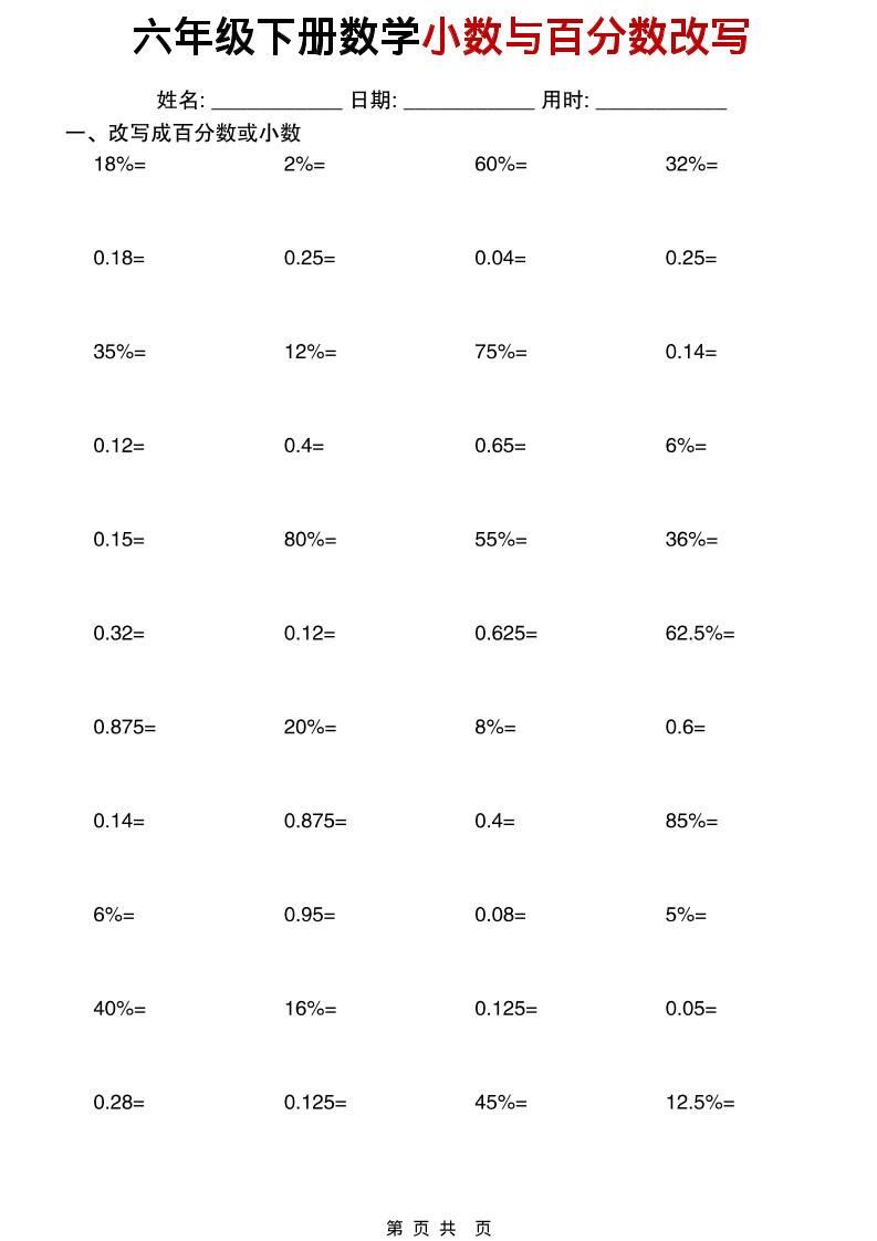 六年级下数学小数与百分数改写练习站长1小时前更新关注私信02832637 ——预览已结束,还剩18页未读——您已获得此文档下载权限,请点击底部下载完整文档 六年级下数学小数与百分数改写练习此内容为付费资源,请付费后查看¥4.9黄金会员¥2.9钻石会员免费立即购买您当前未登录!建议登陆后购买,可保存购买订单付费资源已售 49© 版权声明 版权声明 1 本网站名称:皮皮网创网 2 本站永久网址: https://www.pipihai.com/ 3 本网站的文章部分内容可能来源于网络,仅供大家学习与参考,如有侵权,请联系皮皮进行删除处理。 4 本站一切资源不代表本站立场,并不代表本站赞同其观点和对其真实性负责。 5 本站一律禁止以任何方式发布或转载任何违法的相关信息,访客发现请向皮皮举报 6 本站资源大多存储在云盘,如发现链接失效,请联系我们我们会第一时间更新。 7 本站采用知识共享署名-非商业性使用-相同方式共享4.0国际许可协议进行许可 THE END数学 喜欢就支持一下吧点赞637 分享QQ空间微博QQ好友海报分享复制链接收藏